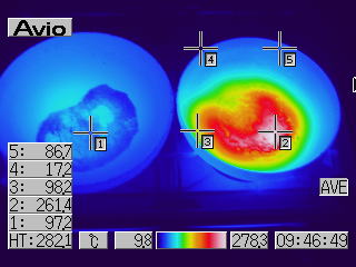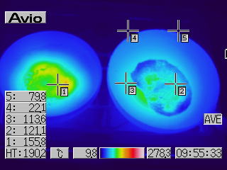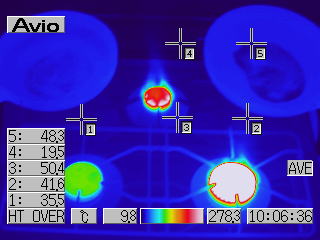 さらにその理由を調べてみようと1台数百万円もするサーモビュア(エリア温度測定器)を使って調べた所、興味深い事が分かりました。