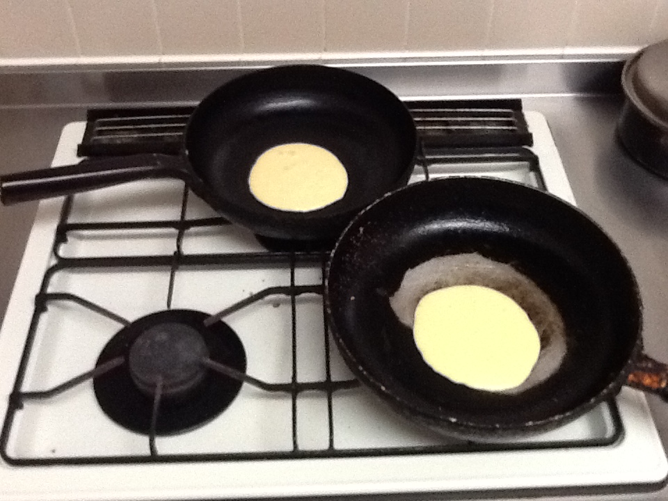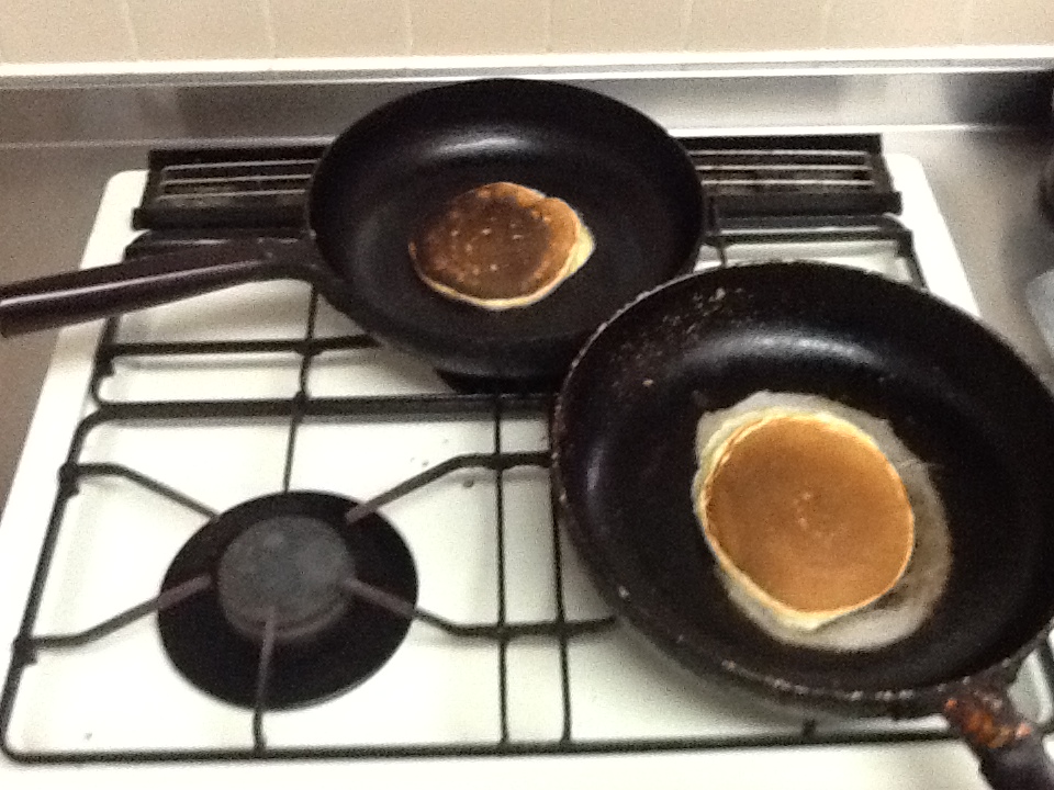 それが何に起因するのか長い間不明でしたが、二つのフライパンを使って同時にホットケーキを作り始めた所、フライパンによって出来が異なる事がようやく分かりました。