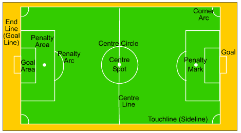 ![]() 相手チームのゴールにボールを蹴り込めば1点 分かり難いのはオフサイドぐらいかもしれませんが、キックオフやら、ペナルティーキックやら、ゴールにも余り知られていないルールが隠されています。 それを含めて3分以内でご説明しますので、宜しければ覗いてみて下さい。 2. サッカー場